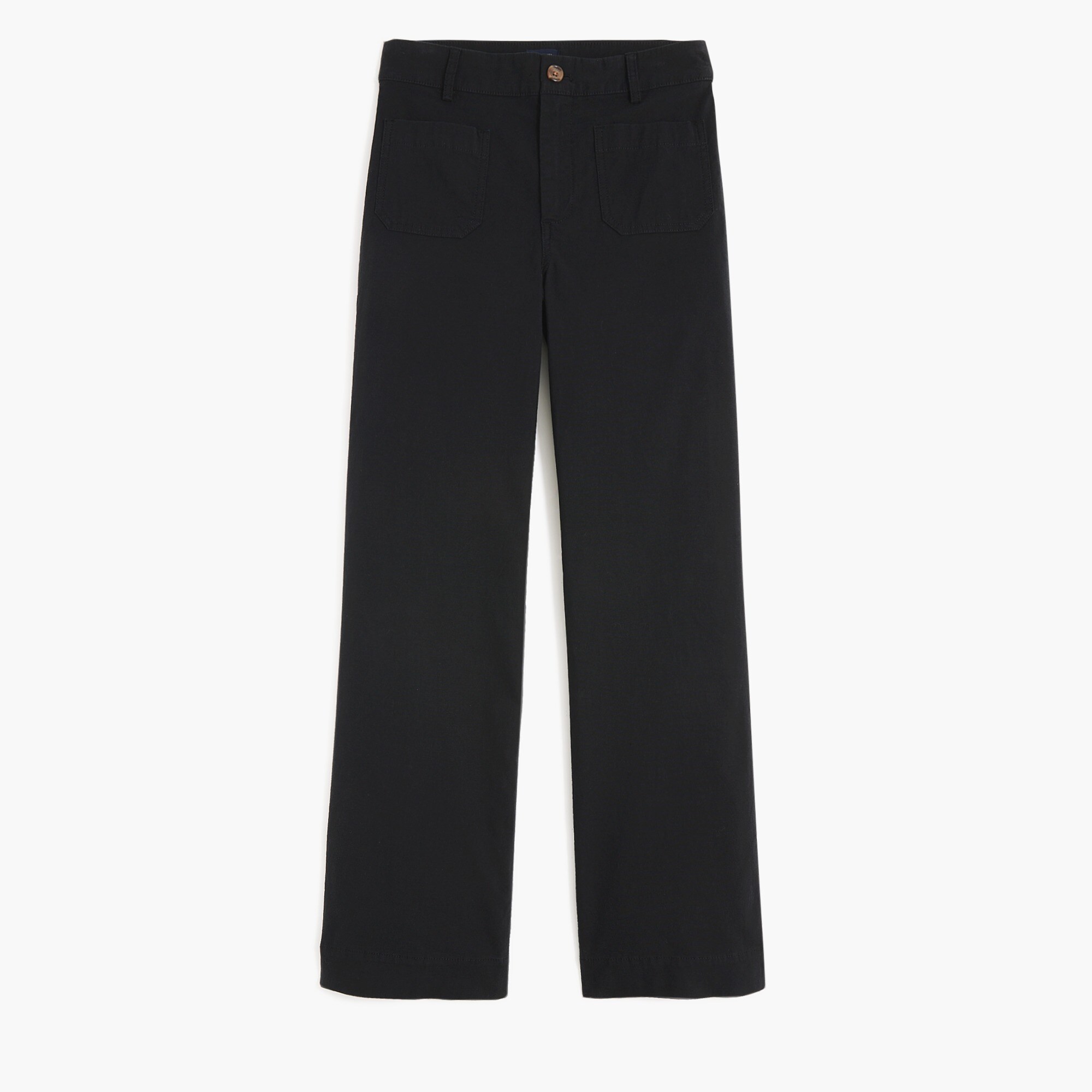 - Fitted at the hip, easy at the thigh, with a wide-leg.