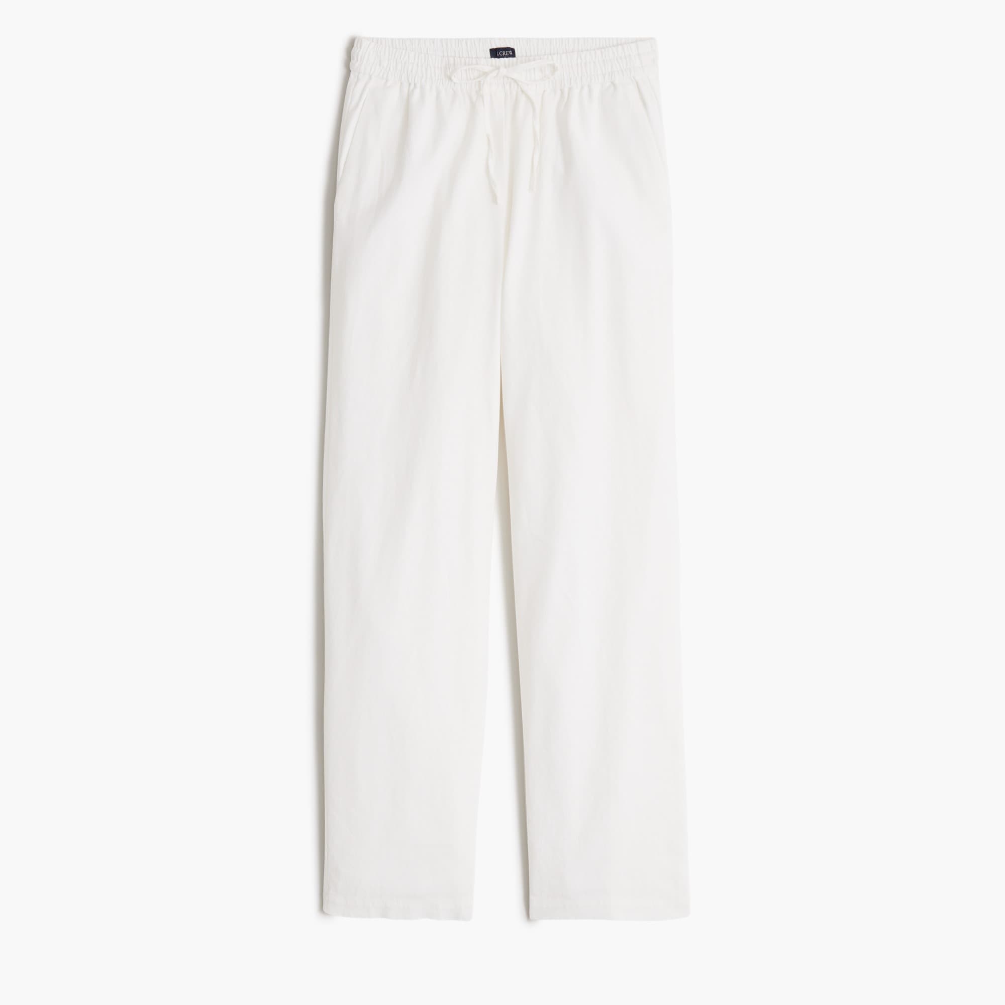 Linen-blend slim wide-leg drawstring pant