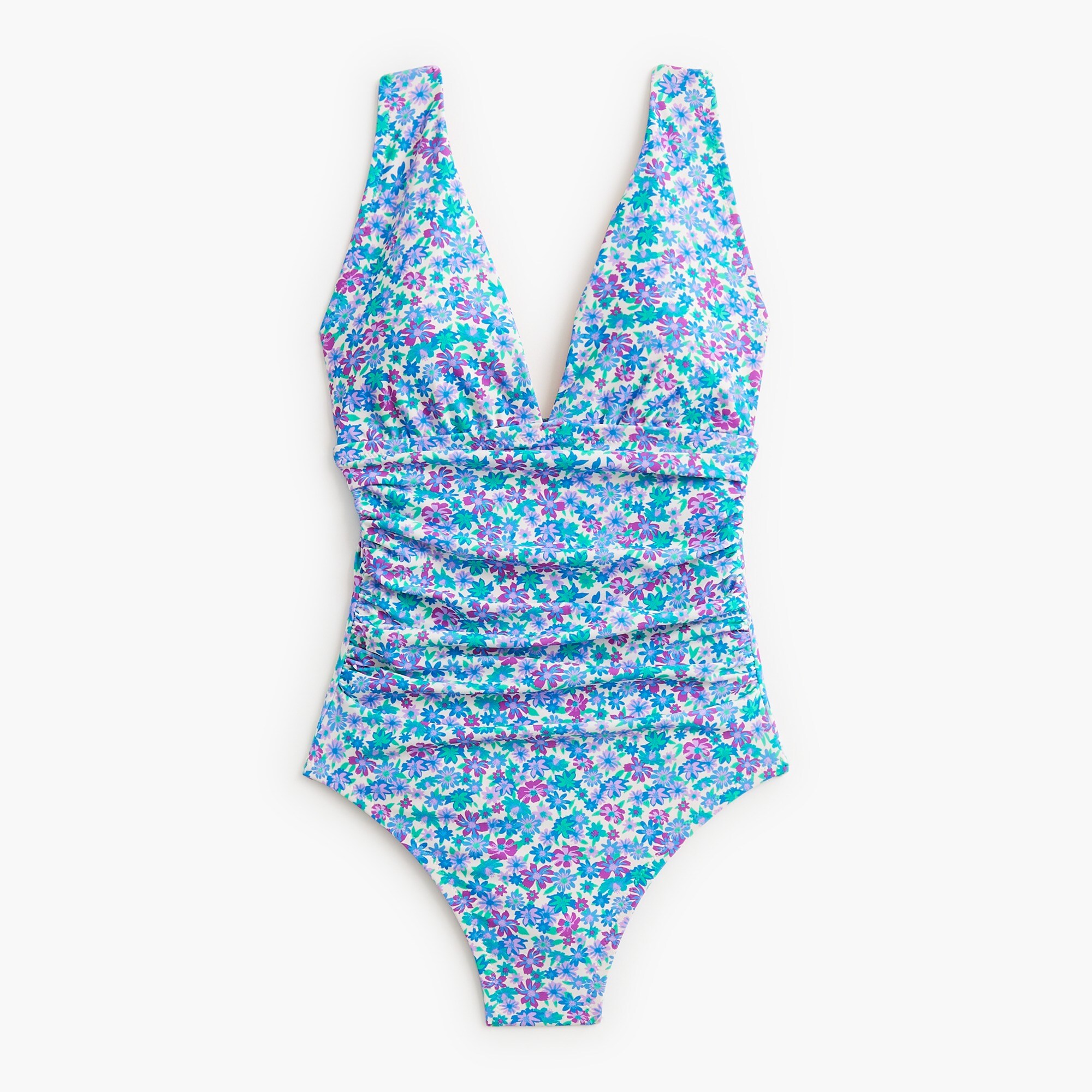 Ruched plunge one-piece swimsuit