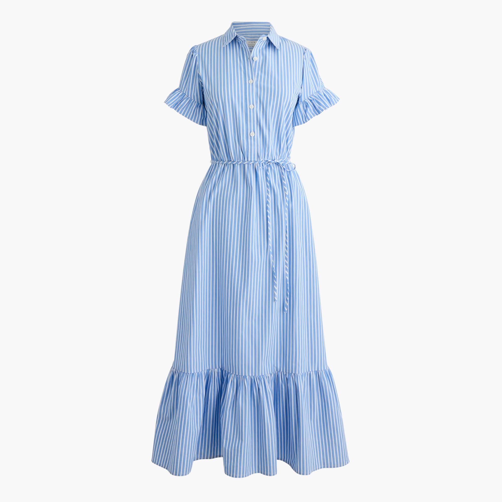 Striped ruffle-sleeve shirt-dress