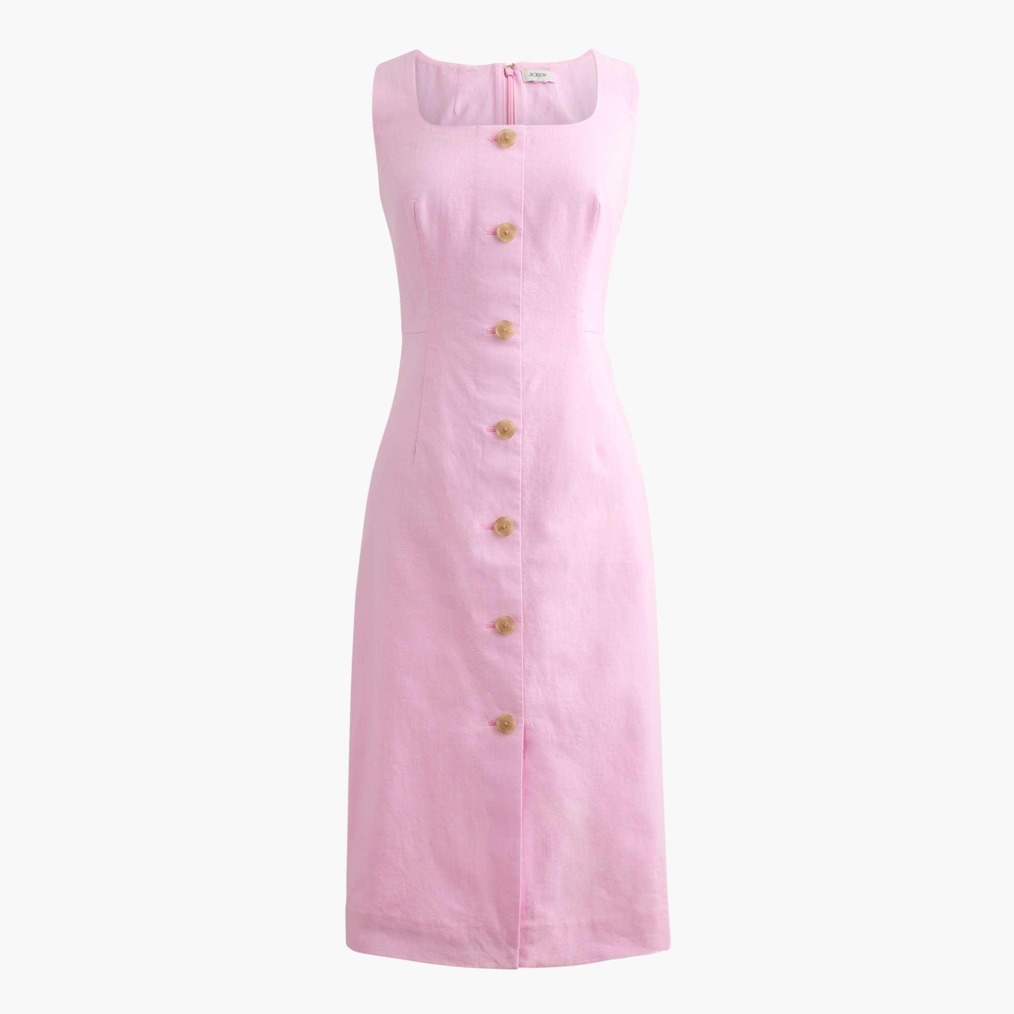 Linen-cotton blend button-front midi dress
